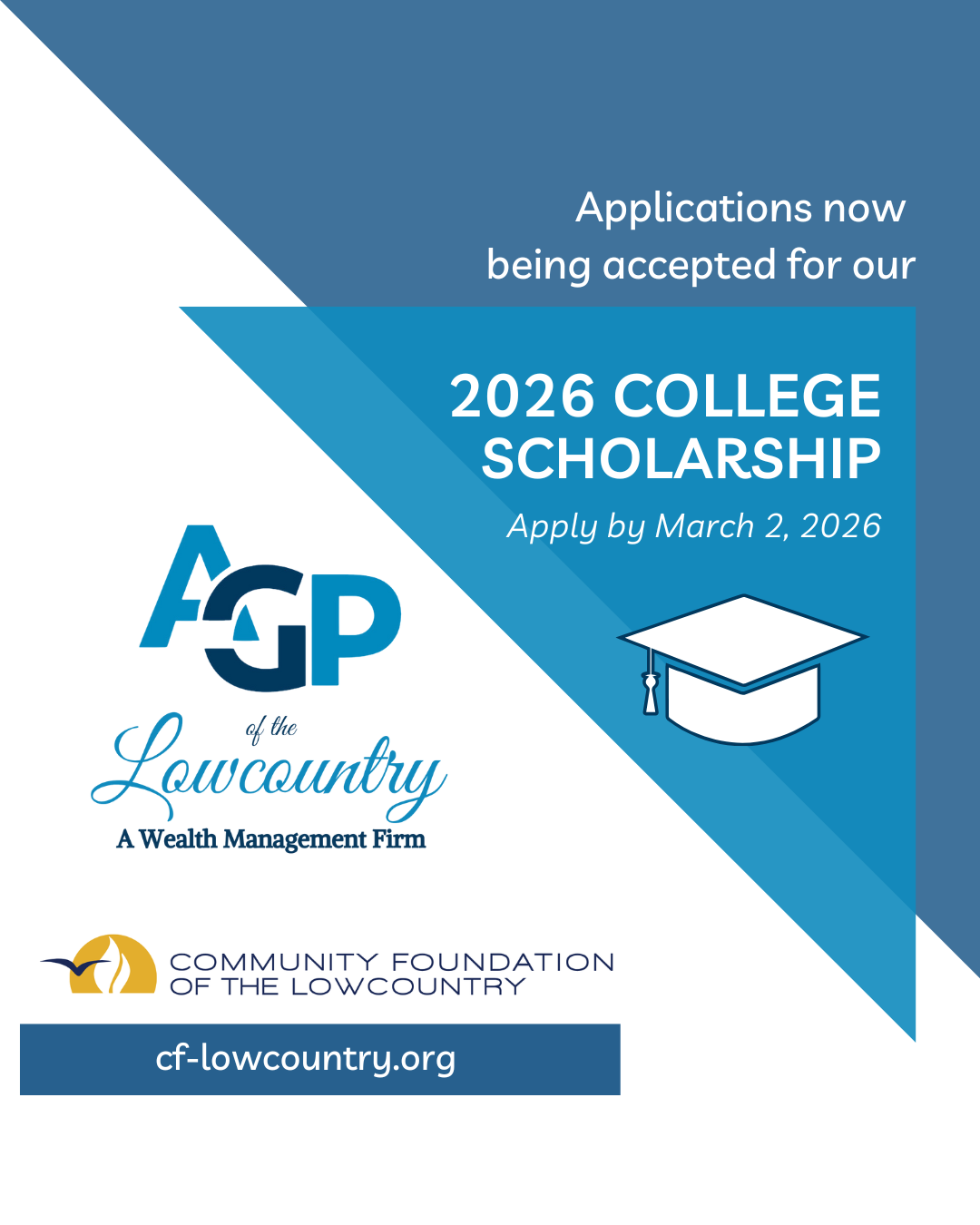 We are pleased to announce that applications are now being accepted for the 2026 Alliance Global Partners of the Lowcountry Scholarship! The scholarship was established in 2022 and provides post-secondary scholarship opportunities for qualified students scheduled to graduate from a high school located in southern Beaufort County, with plans to pursue a post-secondary education in the area of business through an accredited college or university.