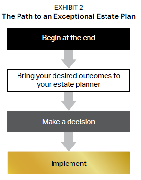 There is a process you can follow that we believe can potentially increase your chances of ending up with an exceptional estate plan that satisfies the technical and human aspects and reflects your latest thinking on your needs and goals (see Exhibit 2).